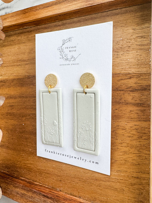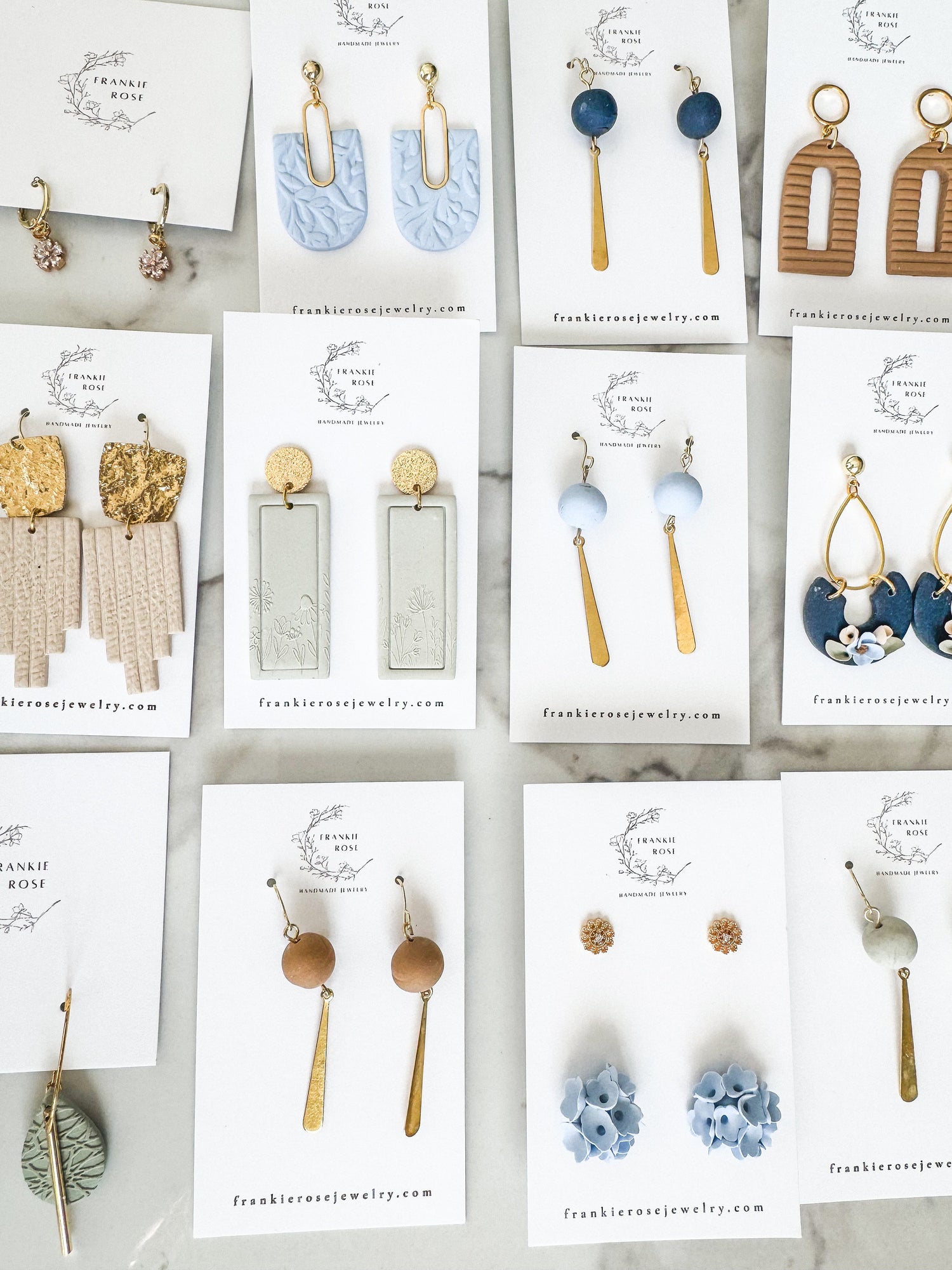 This spring time collection includes handmade clay pieces that incorporate spring florals, and hydrangeas. The perfect lightweight earrings for the spring.