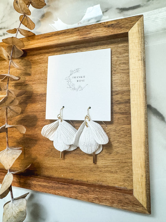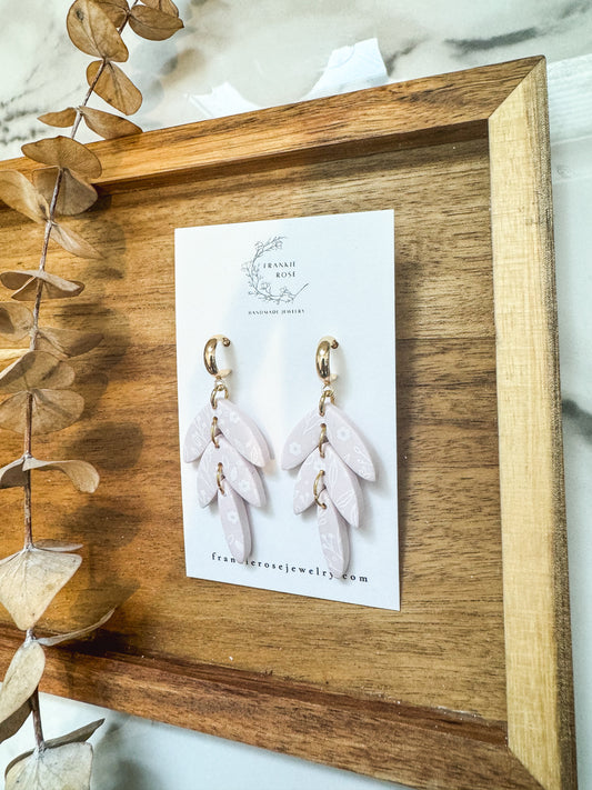 light pink and white floral dangles | clay earrings | Spring Floral Collection