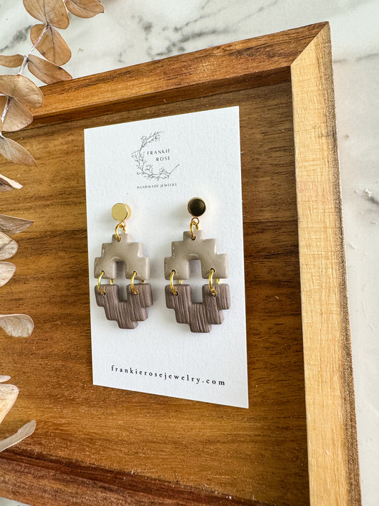 brown and taupe dual aztec | totally taupe collection | clay earrings