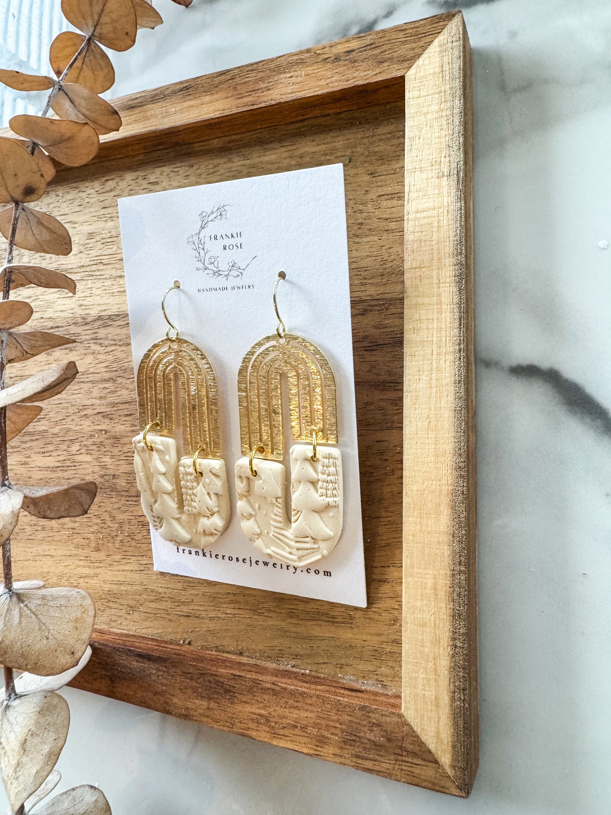 Delicate brass arches adorned with an intricate tree pattern create a striking visual element in this lightweight charm. The ivory finish enhances the natural aesthetic, making it an ideal accent for jewelry designs that celebrate organic forms. Crafted with precision, this piece combines architectural elegance with botanical inspiration, offering versatility for both contemporary and classic collections. Perfect for designers seeking understated sophistication.