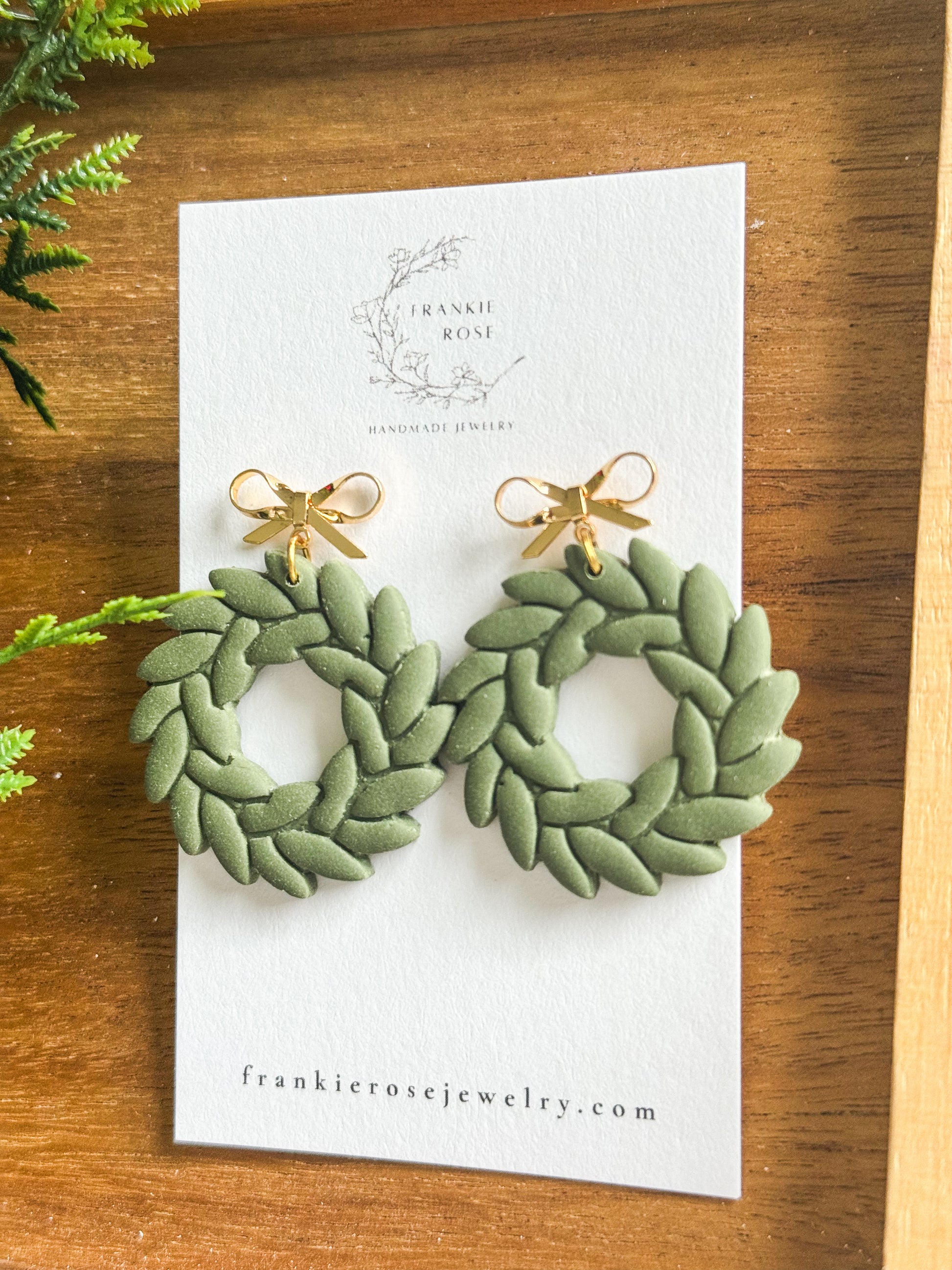 This elegant green wreath features your choice of a gold or silver bow stud, adding a refined touch to any outfit. Crafted to be lightweight and hypoallergenic, it ensures comfortable wear for sensitive skin. Perfect for those seeking stylish, skin-friendly accessories with enduring appeal.